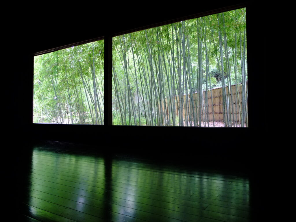 大下雅章 絵画展の会場、くるま椅子劇場は竹林の幻想的な景色もお楽しみいただける会場です。