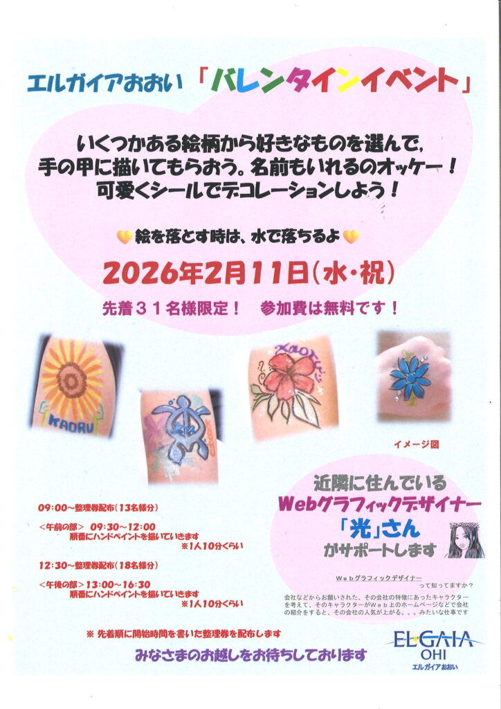 ②バレンタインイベント 手の甲に👐素敵にアートグラフィックデコ💛